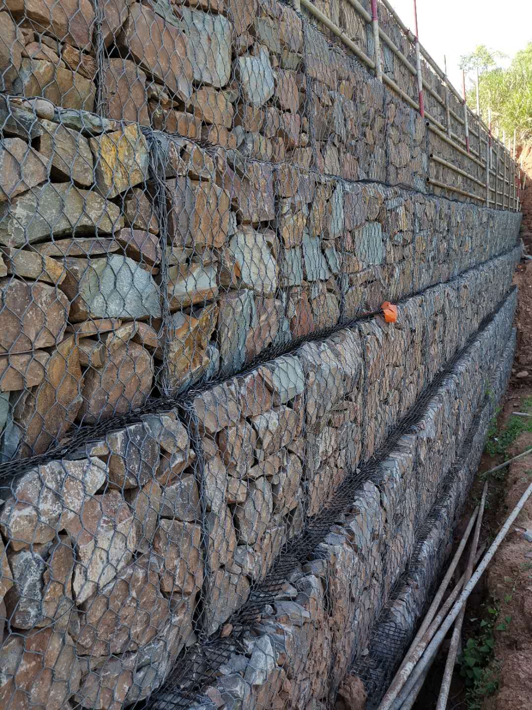石籠網(wǎng)可用于邊坡支護(hù)、基坑支護(hù)、山體巖面掛網(wǎng)噴漿、邊坡植生(綠化)、鐵路高速公路隔離護(hù)攔網(wǎng),它還能制成箱籠、網(wǎng)墊,用于江河、堤壩及海塘的防沖刷保護(hù),水庫、河流截流用網(wǎng)箱。河流最嚴(yán)重的災(zāi)害是水流沖刷河岸使其破壞,引發(fā)的洪水泛濫,導(dǎo)致生命財(cái)產(chǎn)遭受大量損失和大量水土流失。因此在處理上述問題時(shí)侯,格該生態(tài)格網(wǎng)結(jié)構(gòu)的應(yīng)用成為最佳的解決方案之一,它能使河床河岸得到永久性保護(hù)。
