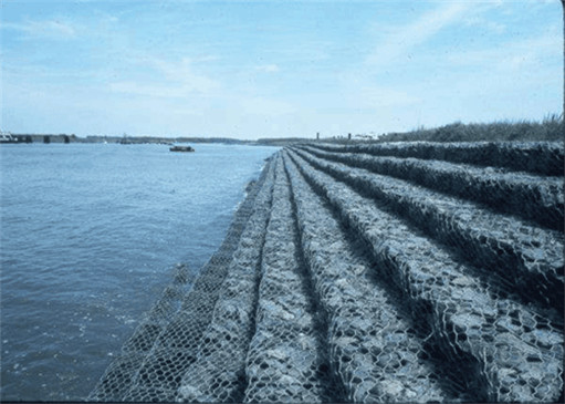 雷諾護(hù)墊是指由機(jī)編雙絞合六邊形金屬網(wǎng)面構(gòu)成的厚度遠(yuǎn)小于長度和寬度的墊形工程構(gòu)件,其中裝入塊石等填充料后連接成一體,成為主要用于水利堤防、岸坡、海曼等的防 沖刷結(jié)構(gòu),具有柔性、對地基適應(yīng)性的優(yōu)點。