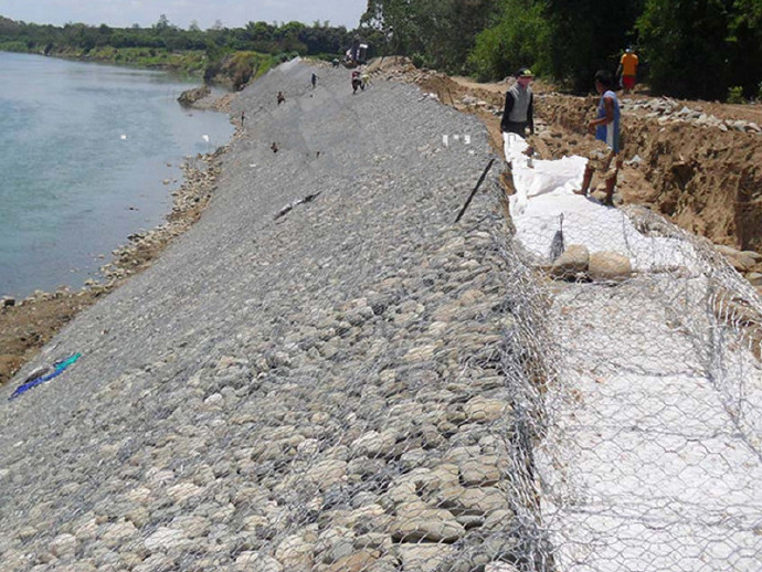 雷諾護墊是指由機編雙絞合六邊形金屬網(wǎng)面構(gòu)成的厚度遠小于長度和寬度的墊形工程構(gòu)件,其中裝入塊石等填充料后連接成一體,成為主要用于水利堤防、岸坡、海曼等的防沖刷結(jié)構(gòu),具有柔性、對地基適應性的優(yōu)點。