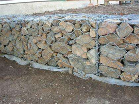 格賓網(wǎng)(格賓石籠)是由機(jī)編雙絞合六邊形金屬網(wǎng)面構(gòu)成的箱形結(jié)構(gòu),格賓網(wǎng)的鋼絲是由厚鍍鋅低碳鋼絲制造而成的。為了提高格賓網(wǎng)結(jié)構(gòu)的強(qiáng)度,所有的鋼絲網(wǎng)面板邊端都采用直徑更大的鋼絲,對格賓網(wǎng)的鋼絲可進(jìn)行厚鍍高爾凡處理來提高鋼絲的耐久性。當(dāng)用于土壤或水呈酸性的污染環(huán)境中時,還可對鋼絲采用覆塑等措施進(jìn)行保護(hù)。格賓網(wǎng)是由間隔1m的隔板分成若干單元格,格賓石籠即在格賓網(wǎng)里填充石頭,形成了具有柔性,透水性及整體性的結(jié)構(gòu)。