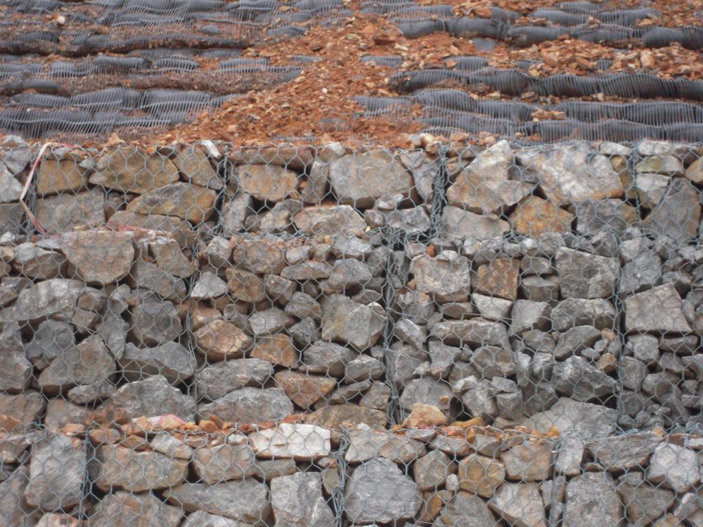 六角網(wǎng)鋪設(shè)護坡,樹叢和雜草等植物可以穿過鐵絲網(wǎng)生長,不僅能夠固定石塊,更主要的是有利于綠化環(huán)境,用綠色植物來固定土壤,防范山坡石漠化。