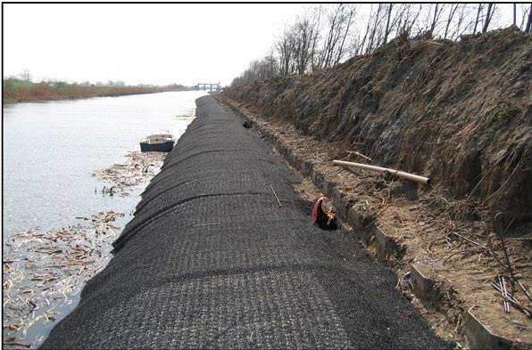 加筋麥克墊實(shí)用性主要體現(xiàn)在五個(gè)方面:麥克墊的自透水性、可植被性、壽命長、經(jīng)濟(jì)性以及施工方便。