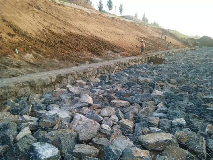 固濱籠具有固堤防沖刷的作用, 固濱籠工藝是指將特種鋼絲由專用機械編織成雙絞、蜂巢形網(wǎng)目的格網(wǎng)片,根據(jù)工程設(shè)計要求,裁剪、設(shè)計、組裝成箱籠并裝入塊石等填充料后連接成一體的結(jié)構(gòu),用作提防、路基防護工程。