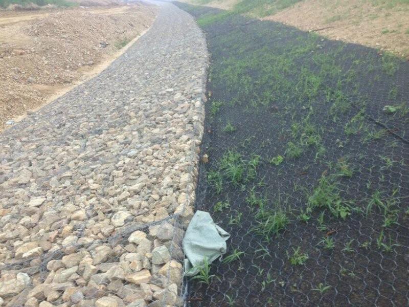 加筋麥克墊作為一種土工墊,它在具有一般土工墊優(yōu)良的抗侵蝕性能之外,還具備著比其更完美的防沖刷性能和機(jī)械張拉力,所以,它可以在防護(hù)邊坡表層被沖刷時具有很好的應(yīng)用。土工材料的本質(zhì)是聚丙烯,而混合了10%的鋁鋅合金鋼絲后,則對腐蝕產(chǎn)生了非常強(qiáng)的防范效果。因為加筋麥克墊存在孔隙,所以在結(jié)構(gòu)中進(jìn)行填土?xí)r對于誰的排出非常有利,故而在土體表面會很快降低孔隙中水對其產(chǎn)生的壓力大大地保證了土體的抗剪強(qiáng)度,也在很大程度上穩(wěn)定了整個結(jié)構(gòu)。