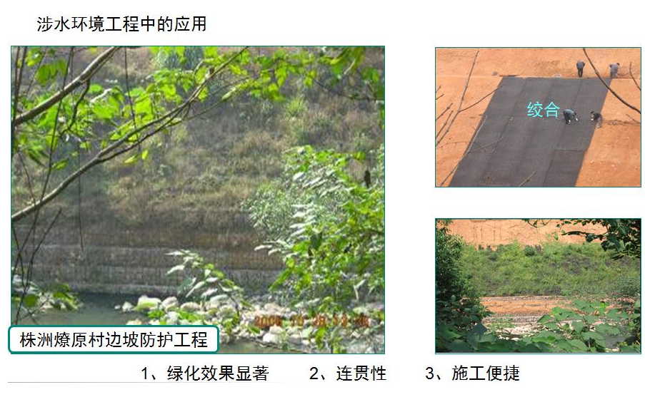 6.可替代混凝土、瀝青、塊石等永久性的坡面防護(hù)材料,用于公路、鐵路、河道、堤壩、山坡等坡面保護(hù);