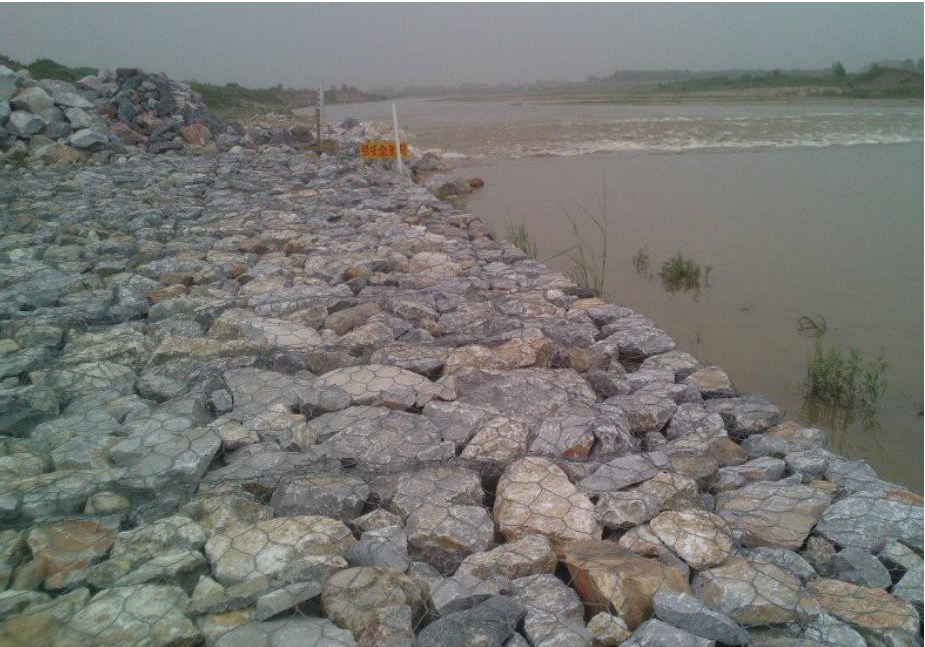 雷諾護(hù)墊是指由機(jī)編雙絞合六邊形金屬網(wǎng)面構(gòu)成的厚度遠(yuǎn)小于長(zhǎng)度和寬度的墊形工程構(gòu)件,其中裝入塊石等填充料后連接成一體,成為主要用于水利堤防、岸坡、海曼等的防 沖刷結(jié)構(gòu),具有柔性、對(duì)地基適應(yīng)性的優(yōu)點(diǎn)。