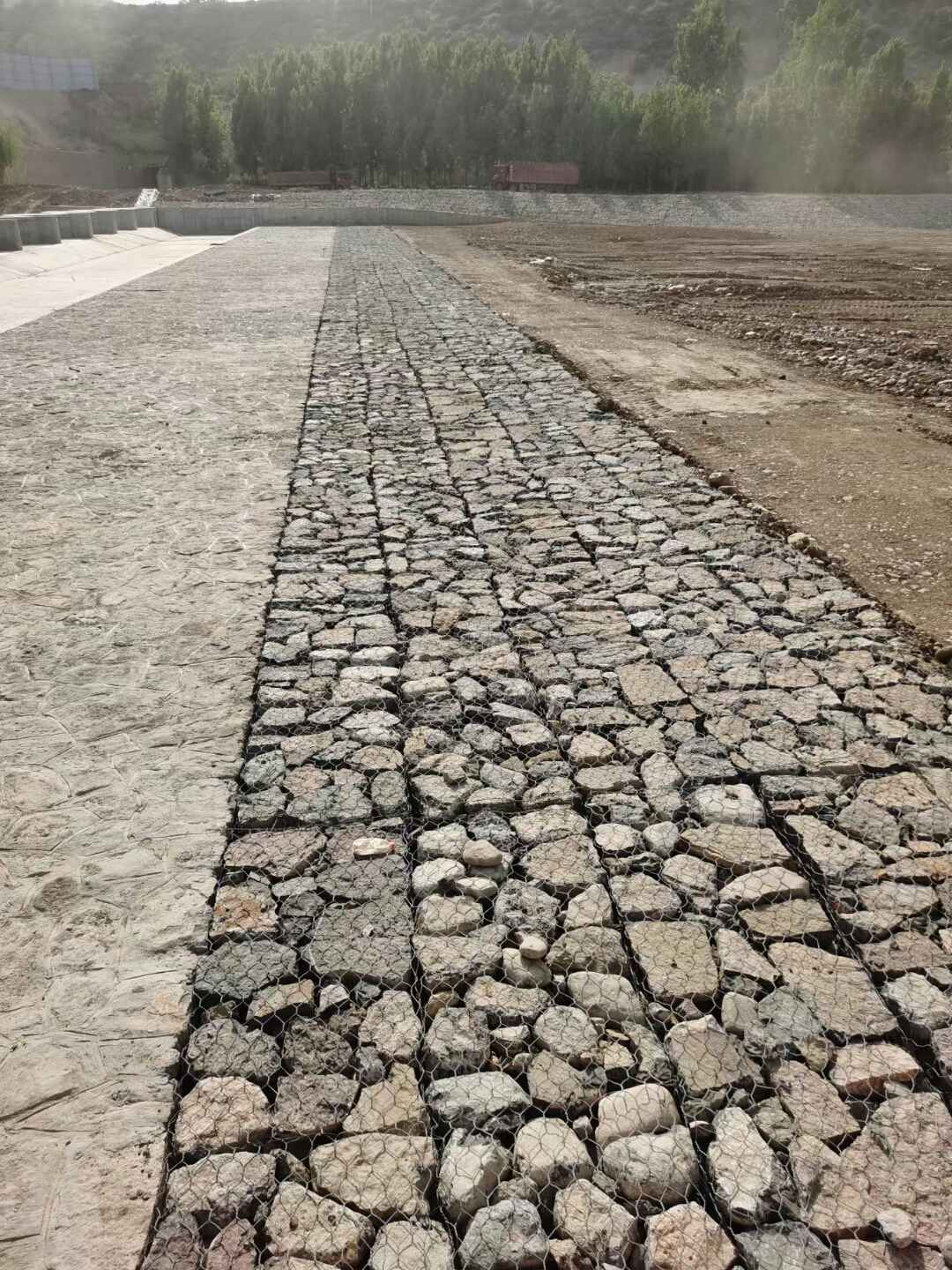 雷諾護(hù)墊是指由機(jī)編雙絞合六邊形金屬網(wǎng)面構(gòu)成的厚度遠(yuǎn)小于長(zhǎng)度和寬度的墊形工程構(gòu)件,其中裝入塊石等填充料后連接成一體,成為主要用于水利堤防、岸坡、海曼等的防沖刷結(jié)構(gòu),具有柔性、對(duì)地基適應(yīng)性的優(yōu)點(diǎn)。