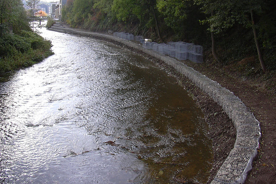 二、石籠網(wǎng)箱或者網(wǎng)墊內(nèi)石塊與石塊間的孔隙為水流動創(chuàng)造了條件,實現(xiàn)水體與土壤間的自然交換,為水中生物和微生物創(chuàng)造生存環(huán)境,這樣就增強了水體自凈能力,保護和改善了水質(zhì)。