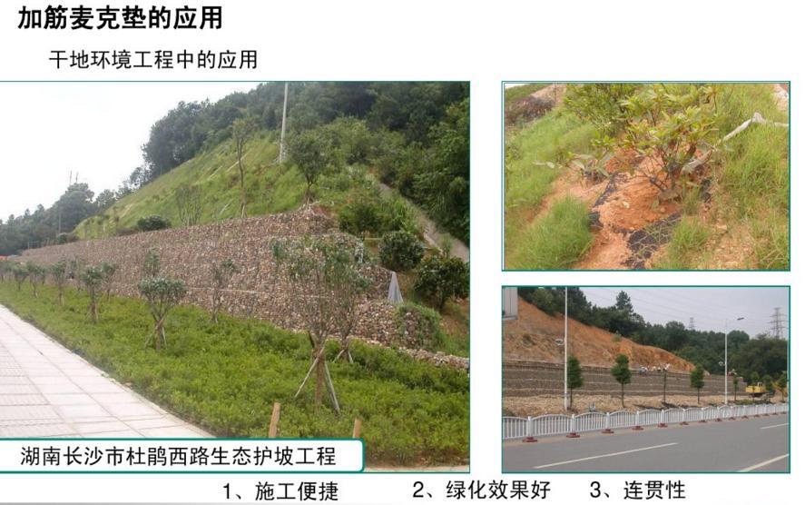 鍍高爾凡加筋麥克墊屬于組合式產(chǎn)品,土工材料與綠格網(wǎng)相結(jié)合而成,兼具土工材料及綠格網(wǎng)的優(yōu)點(diǎn)。土工材料為聚丙烯材質(zhì),綠格網(wǎng)鋼絲通常選用防腐性能好的鍍10%鋁鋅合金鋼絲。被廣泛應(yīng)用于生態(tài)自然恢復(fù),市政景觀工程,河道邊坡防護(hù),公路、鐵路路基坡面穩(wěn)固工程。
