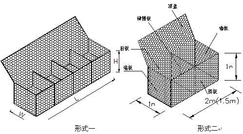 格賓網(wǎng)箱 它是由重型六角網(wǎng)剪裁、折疊加工而成的鐵絲網(wǎng)箱籠,一般由4片重型六角網(wǎng)折疊組裝成的網(wǎng)箱,一片大的六角網(wǎng)折疊成長(zhǎng)方體的4個(gè)大面,兩頭有兩小片的六角網(wǎng),中間有隔板網(wǎng)片。