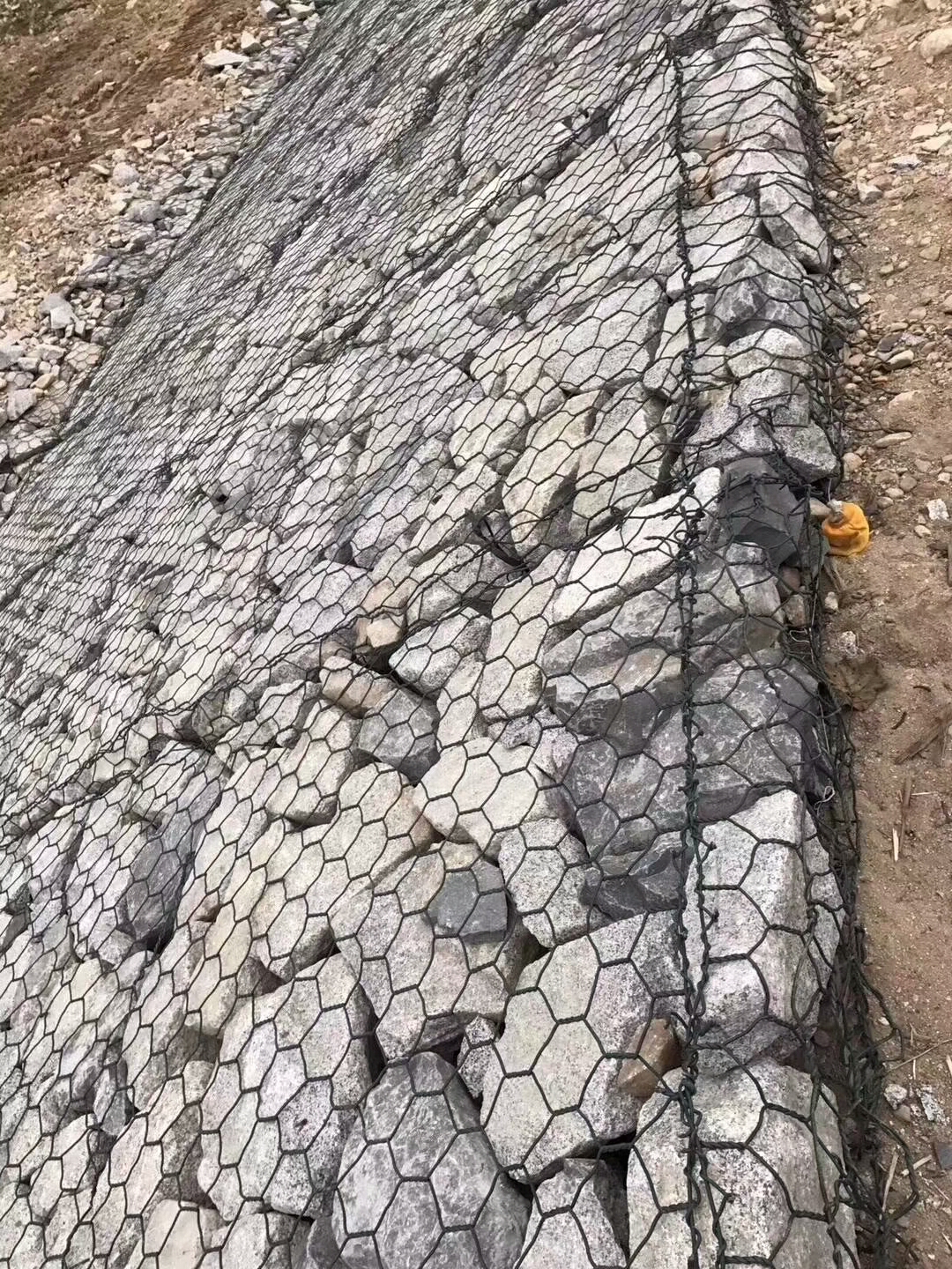 4、石頭的擺放要牢固、上面要平,填縫的小石塊要大于網(wǎng)眼,否則不能使用表面。完成裝石后要進行自檢和聯(lián)合檢測,合格后進行封蓋。