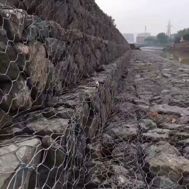 固濱籠(又稱固濱石籠、蜂巢格網(wǎng)、雙絞格網(wǎng)、多絞格網(wǎng))石籠防護工程技術(shù)是指由專用機械將涂塑或不涂塑(PVC樹脂)的熱鍍鋅鋁低碳鋼絲編織成格賓網(wǎng)片,然后將其裁剪、拼裝成符合設(shè)計要求的格賓網(wǎng)箱籠,用塊石等填滿后用于堤防、河岸、路基的防護。格賓石籠防護屬于柔性防護工程,有利于保護河道、堤防岸坡的安全穩(wěn)定,可實現(xiàn)水土自然交換,增強水體自凈能力,同時又可以實現(xiàn)墻(坡)面植被綠化,使工程建筑與生態(tài)環(huán)境保護達(dá)到有機結(jié)合。