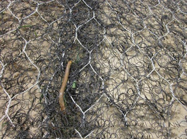 4、由于表面粗糙,使風(fēng)、水流在網(wǎng)墊表面產(chǎn)生無數(shù)渦流,因而產(chǎn)生消能作用,促使其攜帶物沉淀網(wǎng)墊中;