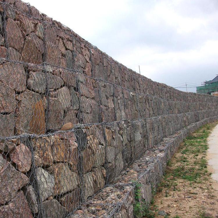 石籠網(wǎng)箱在施工現(xiàn)場經(jīng)石頭填充,構(gòu)成具有柔性、透水性及整體性的結(jié)構(gòu), 如擋墻、河道襯砌、堰等支擋的防沖蝕工程。