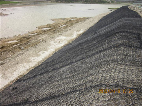 5、加筋麥克墊的鋼絲具有一定的抗拉強度,不易被拉斷,填充料之間又充滿了空隙,具有一定的適應(yīng)變形的能力。當?shù)鼗闆r發(fā)生變化時,如發(fā)生不均勻沉降、地震等,箱內(nèi)填充料受箱籠的約束不會跑到箱籠外,而會自行調(diào)整形成新的平衡;又因箱籠系柔性結(jié)構(gòu),因此,防護工程表面可能會發(fā)生小的變異,但不會發(fā)生裂縫、網(wǎng)片被拉斷從而造成防護體被破壞的現(xiàn)象。