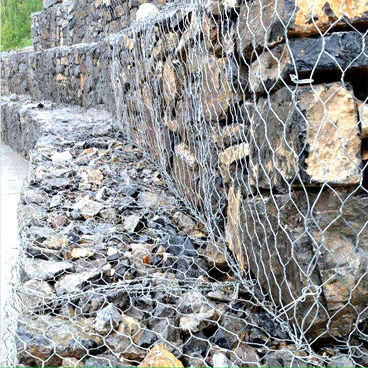 石籠網(wǎng)是由高抗腐蝕、高強度、具有延展性的低碳鋼絲或者包覆PVC的以上鋼絲使用機械編織而成,根據(jù)ASTM A 975和EN10223標(biāo)準(zhǔn),所使用的低碳鋼絲直徑根據(jù)工程設(shè)計要求而不同。一般介于2.0-4.0mm之間,鋼絲的抗拉強度不少于38kg/m2,金屬鍍層重量一般高于245g/m2石籠網(wǎng)片的邊緣線直徑一般要大于網(wǎng)線直徑。其雙線絞合部分的長度不得小于50mm.以保證絞合部分鋼絲的金屬鍍層和PVC鍍層不受破壞。
