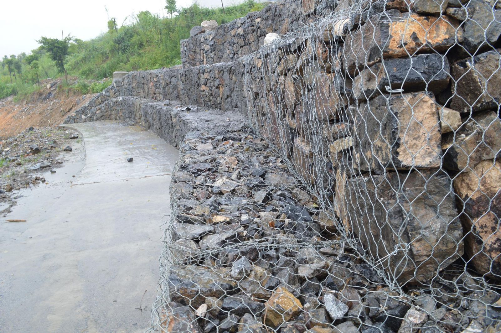 石籠網(wǎng)由高抗腐蝕、高強(qiáng)度、具有延展性的低碳鋼絲或者包覆PVC的以上鋼絲使用機(jī)械編織而成,使用該網(wǎng)制作而成的箱型結(jié)構(gòu)就是石籠。根據(jù)ASTM和EN標(biāo)準(zhǔn),所使用的低碳鋼絲直徑根據(jù)工程設(shè)計(jì)要求而不同。一般介于2.0-4.0mm之間,石籠網(wǎng)鋼絲的抗拉強(qiáng)度不少于38kg/m2,金屬鍍層重量一般高于245g/m2,石籠網(wǎng)片的邊緣線直徑一般要大于網(wǎng)線直徑。其雙線絞合部分的長度不得小于50mm.以保證絞合部分鋼絲的金屬鍍層和PVC鍍層不受破壞。