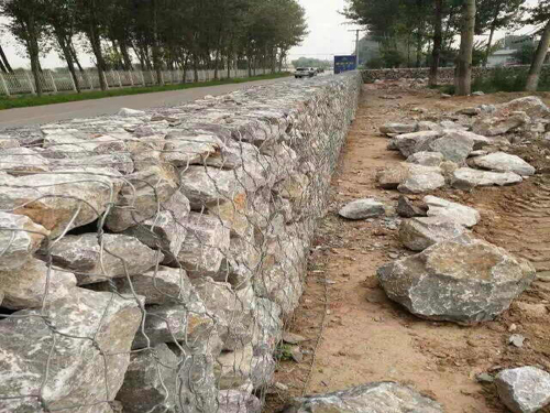 石籠網(wǎng)由高抗腐蝕、高強(qiáng)度、具有延展性的低碳鋼絲或者包覆PVC的以上鋼絲使用機(jī)械編織而成,使用該網(wǎng)制作而成的箱型結(jié)構(gòu)就是石籠。根據(jù)ASTM和EN標(biāo)準(zhǔn),所使用的低碳鋼絲直徑根據(jù)工程設(shè)計(jì)要求而不同。一般介于2.0-4.0mm之間,石籠網(wǎng)鋼絲的抗拉強(qiáng)度不少于38kg/m2,金屬鍍層重量一般高于245g/m2,石籠網(wǎng)片的邊緣線直徑一般要大于網(wǎng)線直徑。其雙線絞合部分的長度不得小于50mm.以保證絞合部分鋼絲的金屬鍍層和PVC鍍層不受破壞。