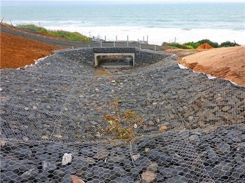 固濱籠(格賓石籠)是由蜂巢形格網(wǎng)片,將特種鋼絲鍍膜后,由專用機(jī)械編織成的雙絞、蜂巢形網(wǎng)片組裝成箱籠,根據(jù)工程設(shè)計要求裁剪、制作、組裝成箱籠并裝入塊石等填充料后連接成一體的結(jié)構(gòu),是用做堤身、堤基及路基等防護(hù)工程的新型結(jié)構(gòu)。岸結(jié)構(gòu)形式可以分為擋墻、護(hù)坡、護(hù)底、護(hù)腳、水下拋石籠等。習(xí)慣上又將護(hù)坡、護(hù)底工程上常用的較薄的一種箱籠稱格賓網(wǎng)墊(高度一般在0.17—40cm)。擋墻、拋石籠常用的較厚的一種稱為格賓網(wǎng)箱(一般高度在50cm以上)。治理山坡、綠化植被及水土保持常用的則稱為格賓植被掛網(wǎng)。