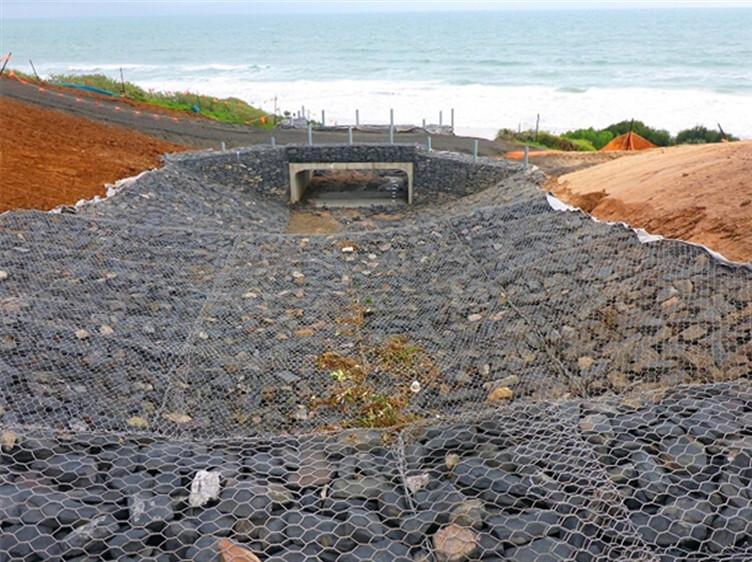 雷諾護墊是厚度在0.17-0.3m的網(wǎng)箱結(jié)構(gòu),在現(xiàn)場用于裝填石頭。主要用作河道、岸坡、路基邊坡防護結(jié)構(gòu)。既可防止河岸遭水流、風(fēng)浪侵襲而破壞,又實現(xiàn)了水體與坡下土體間的自然對流交換功能,達(dá)到生態(tài)平衡。坡上植綠可增添景觀、綠化效果。