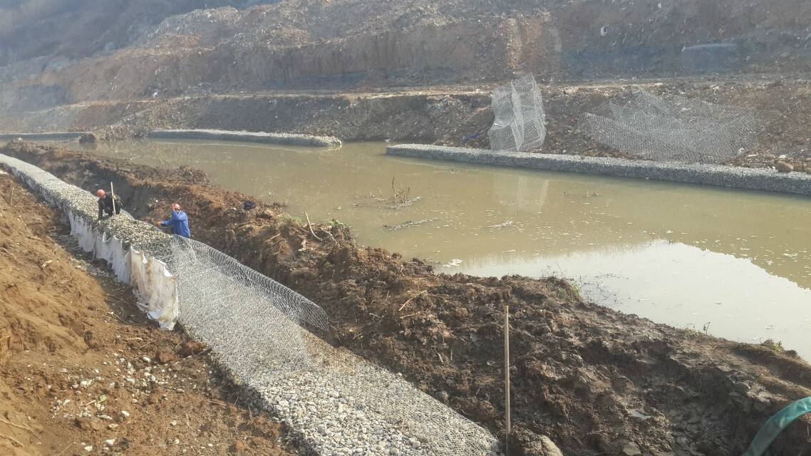 5.放置 綁好后,用機器小心將石籠網(wǎng)一個一個或兩個兩個的吊放到恰當(dāng)位置。為了保證質(zhì)量,石籠網(wǎng)縫邊、組裝時應(yīng)用較粗的邊絲和綁絲。