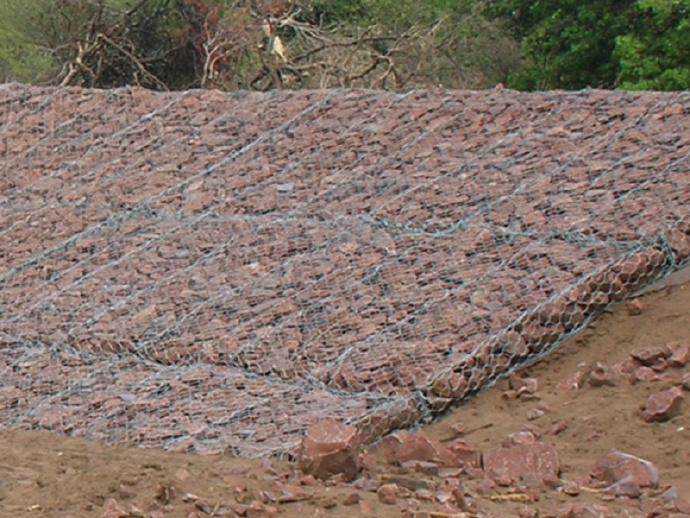 石籠網(wǎng)可用于邊坡支護(hù)、基坑支護(hù)、山體巖面掛網(wǎng)噴漿,石籠網(wǎng)箱、邊坡植生(綠化)、鐵路高速公路隔離護(hù)攔網(wǎng),它還能制成箱籠、網(wǎng)墊,用于江河、堤壩及海塘的防沖刷保護(hù),水庫(kù)、河流截流用網(wǎng)箱。河流最嚴(yán)重的災(zāi)害是水流沖刷河岸使其破壞,引發(fā)的洪水泛濫,導(dǎo)致生命財(cái)產(chǎn)遭受大量損失和大量水土流失。因此在處理上述問題時(shí)侯,格該生態(tài)格網(wǎng)結(jié)構(gòu)的應(yīng)用成為最佳的解決方案之一,它能使河床河岸得到永久性保護(hù)。