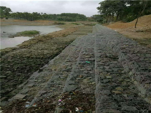 雷諾護墊是厚度在0.17-0.3m的網(wǎng)箱結(jié)構(gòu),在現(xiàn)場用于裝填石頭。主要用作河道、岸坡、路基邊坡護坡結(jié)構(gòu)。既可防止河岸遭水流、風(fēng)浪侵襲而破壞,又實現(xiàn)了水體與坡下土體間的自然對流交換功能,達到生態(tài)平衡。坡上植綠可增添景觀、綠化效果。