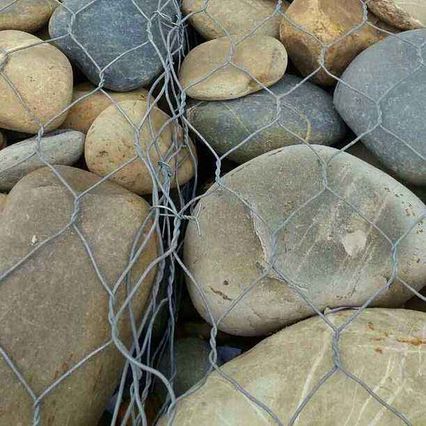 (一)格賓及雷諾護(hù)墊均是由特殊防腐處理的低碳鋼絲經(jīng)機(jī)器編織成的六邊形雙絞合鋼絲網(wǎng),在工廠做成符合工程要求的網(wǎng)箱結(jié)構(gòu),在施工現(xiàn)場用石料填充,其結(jié)構(gòu)具有柔性、透水性及整體性等特點。