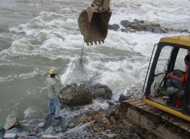 格賓網(wǎng)石籠防護技術(shù)是指由專用機械將涂塑或不涂塑(PVC樹脂)的熱鍍鋅鋁低碳鋼絲編織成格賓網(wǎng)片,然后將其裁 剪、拼裝成符合設(shè)計要求的格賓網(wǎng)箱籠,用塊石等填滿后用于堤防、河岸、路基的防護。格賓網(wǎng)石籠防護屬于柔性防護工程,有利于保護河道、堤防岸坡的安全穩(wěn) 定,可實現(xiàn)水土自然交換,增強水體自凈能力,同時又可以實現(xiàn)坡面植被綠化,使工程建筑與生態(tài)環(huán)境保護達到有機結(jié)合。
