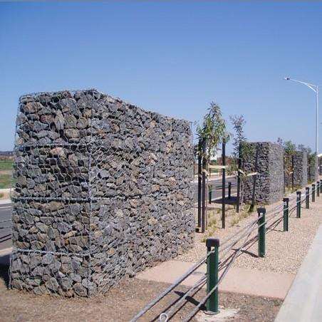 石籠網(wǎng)是金屬線材編織的角形網(wǎng)(六角網(wǎng))制成的網(wǎng)箱,使用的金屬線徑是根據(jù)六角形的大小而不同。如果是金屬鍍層的金屬線六角形,則使用線徑為2.0mm到4.0mm的金屬線,如果是PVC包覆的金屬線編織的六角網(wǎng),則使用外徑為3.0mm到4.0mm的PVC(金屬)線.外框邊緣的線則使用比六角網(wǎng)線粗一號的線。
